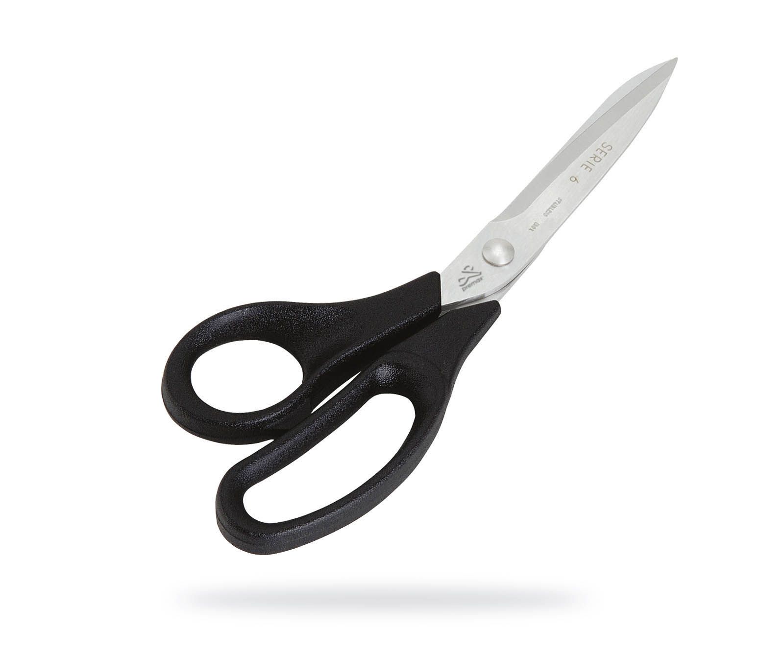 Foarfece pentru croitorie – Colecția Serie 6 – Kevlar – Oțel AISI 420 cu duritate Rockwell 62 HRC – o margine zimțată – finisat satinat – mânere din nylon negru – 9 1/2″ – Scule de tăiat specifice textilelor armamid, în special Kevlar, para -textile aramid, textile din fibra de sticla si textile de inalta rezistenta.